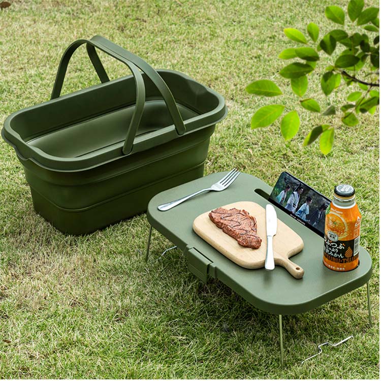 Saski berritzaile hau biltegiratze-ontzi sakon batetik mahai-azalera lau eta egonkorra bihurtzen da segundotan, biltegiratze antolatua eta kanpoko jardueretarako zerbitzatu/jateko plataforma erosoa eskaintzen du.
