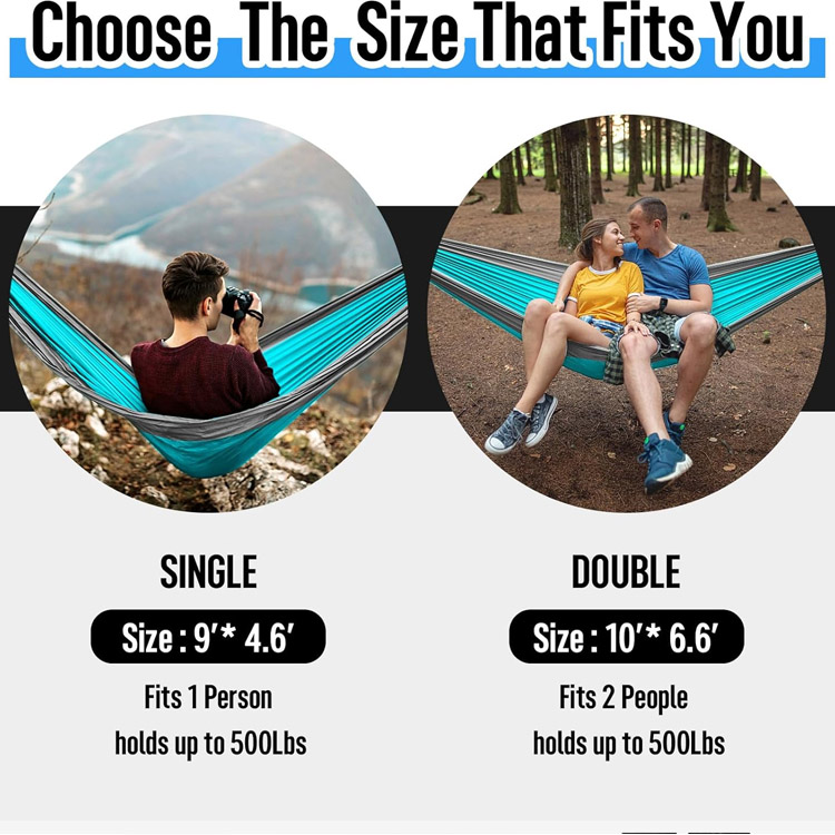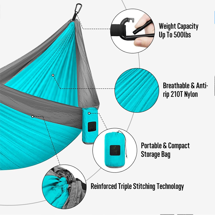 Camping Hammock Hamaka eramangarri bikoitza eta bakarra. Zure azken erlaxazio sistema polifazetikoa Kanpoko abenturetarako. Kanpinetako hamaka honek erabiltzaile bikoitzak zein bakarrekoak hartzen ditu bere diseinu moldagarriarekin. Zuhaitz uhal profesionalekin osatuta, nylonezko jausgailu arin honek erosotasun eta eramangarritasun handiena eskaintzen du.