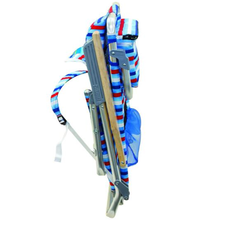 Kanpoko hondartzako aulki tolestu laua eta motxila estilokoa. Kanpoko altzari trinko eta arin, marradun diseinuarekin. Luxuzko metalezko aluminioz egina, erosotasun iraunkorra izateko. Hondartzarako bidaiak eta piknikak egiteko aproposa. Gorri, zuri eta urdin kolore klasikoetan eskuragarri.