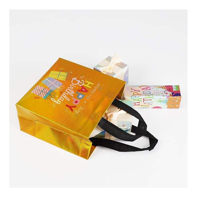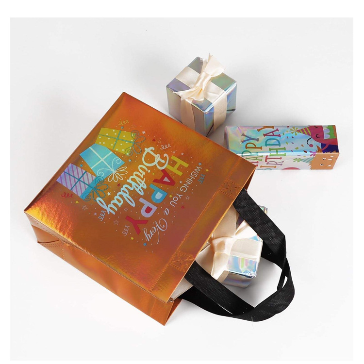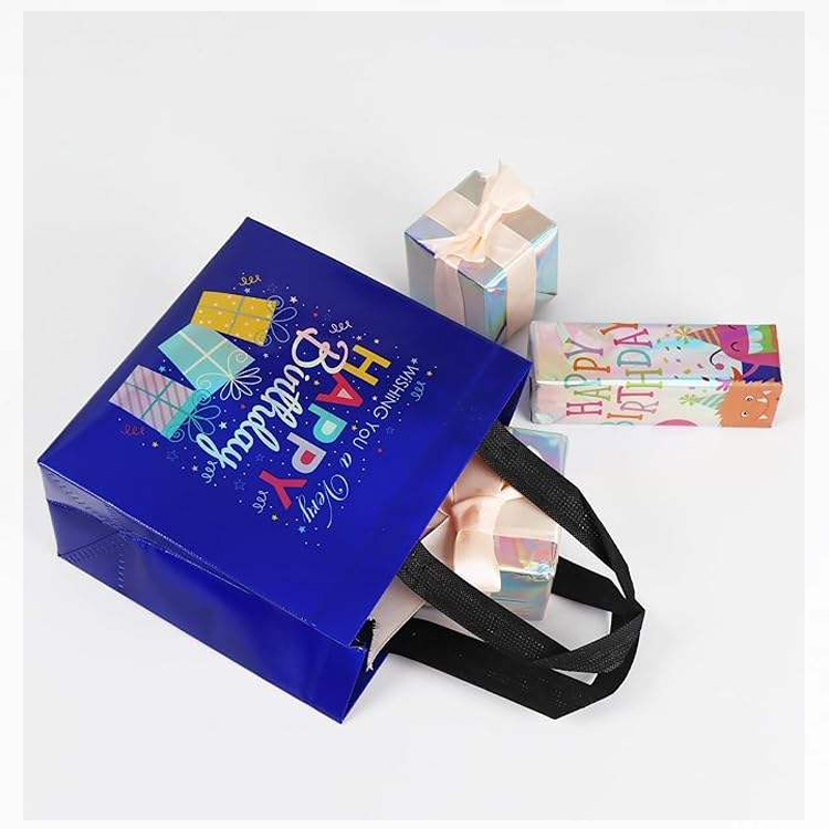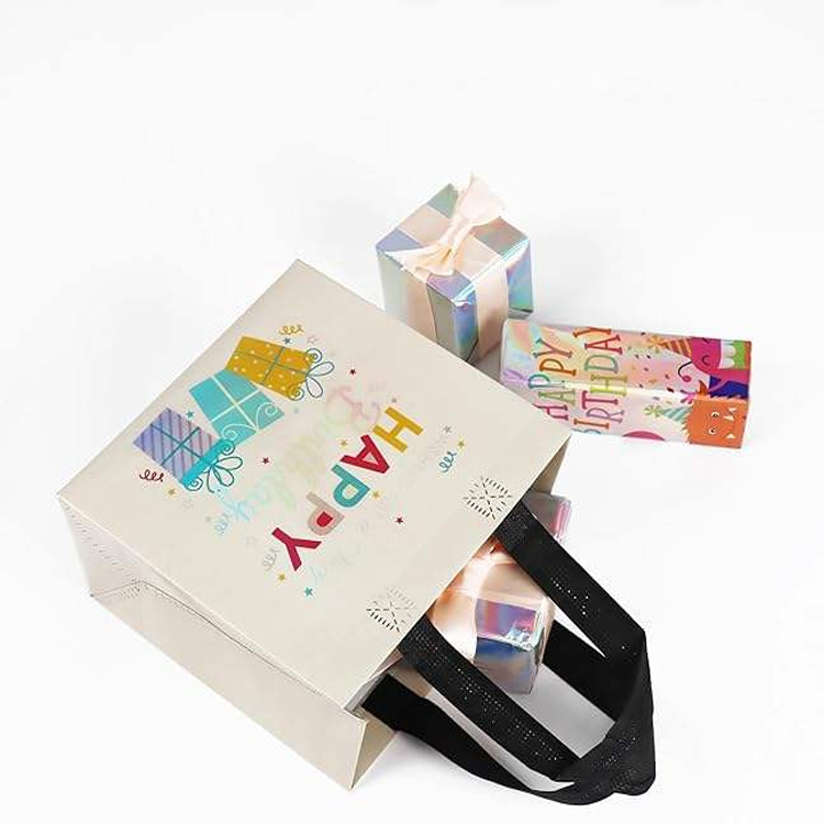 Tamaina anitzeko kolorez koordinatutako ehundu gabeko urtebetetze poltsak. Tamaina anitzeko kolorez koordinatu gabeko ehundu gabeko urtebetetze poltsek diseinu biziak, helduleku sendoak eta bat datozen etiketak dituzte, ezin hobeak festarako, oparietarako eta apaingarrietarako, edozein ospakizunari jai ukitu bat gehituz, konponbide praktiko, berrerabilgarri eta ekologikorako pakete bat eskainiz.