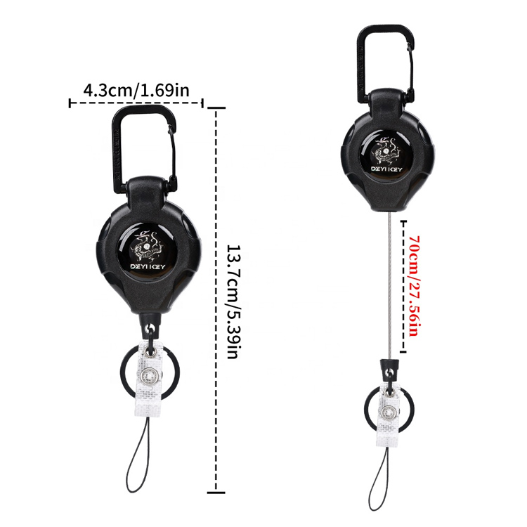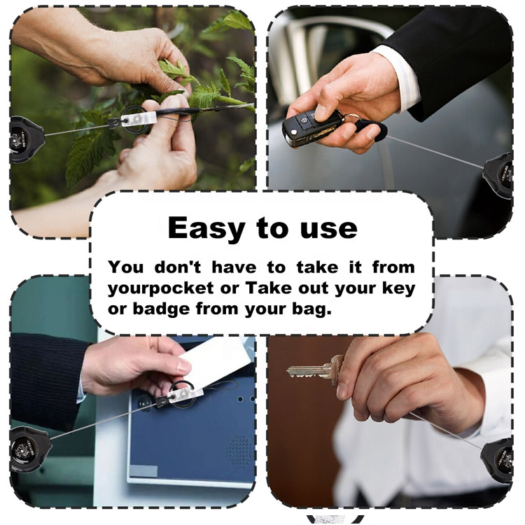 80 cm-ko nylonezko soka iraunkorra dauka, mekanismo erretiragarri leunarekin, luzapen erosoa ahalbidetzen duena, korapilatzeak saihesten dituen bitartean, zure giltzak seguru eta eskuragarri mantenduz kanpoko jardueretan.