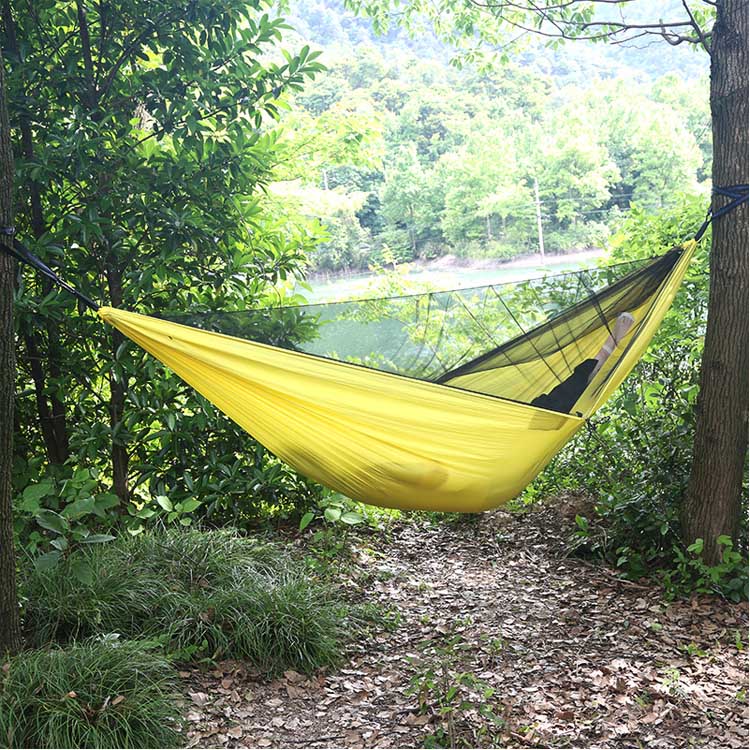 210T poliesterrezko eltxo-sareak ertz indartuekin eta nylonezko 70D-ko hamaka-gorputz ditu, intsektuen babes transpiragarriaren eta pisu-jasateko ahalmen iraunkorraren arteko oreka ezin hobea sortuz.