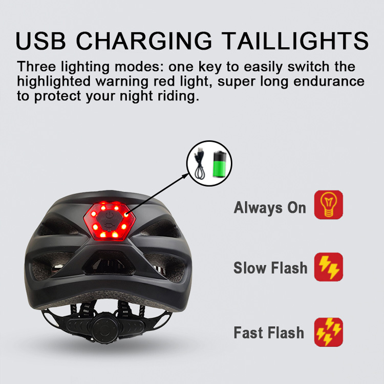 Atzeko argia kargagarria Errepideko Bizikletako Kasko Transpiragarria. Zure Segurtasun Irtenbide pertsonalizagarria Bizikleta modernorako. Helduentzako kirol-kasko bikoitz honek LED atzeko argi kargagarri integratua eta diseinu transpiragarri aurreratua ditu. Babes-biseraz osatuta, Errepideko Bizikleta abenturetarako ikusgarritasun eta erosotasun handiagoa eskaintzen du.