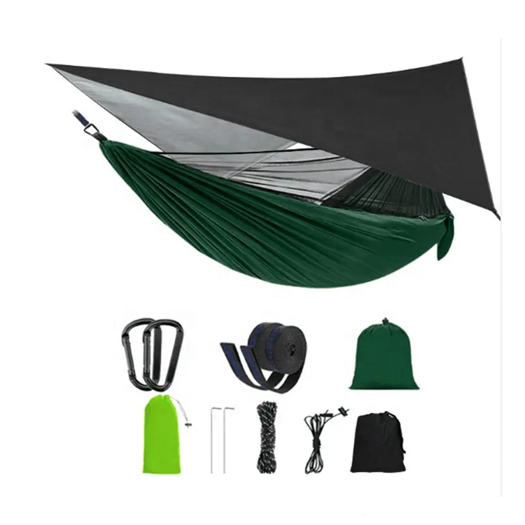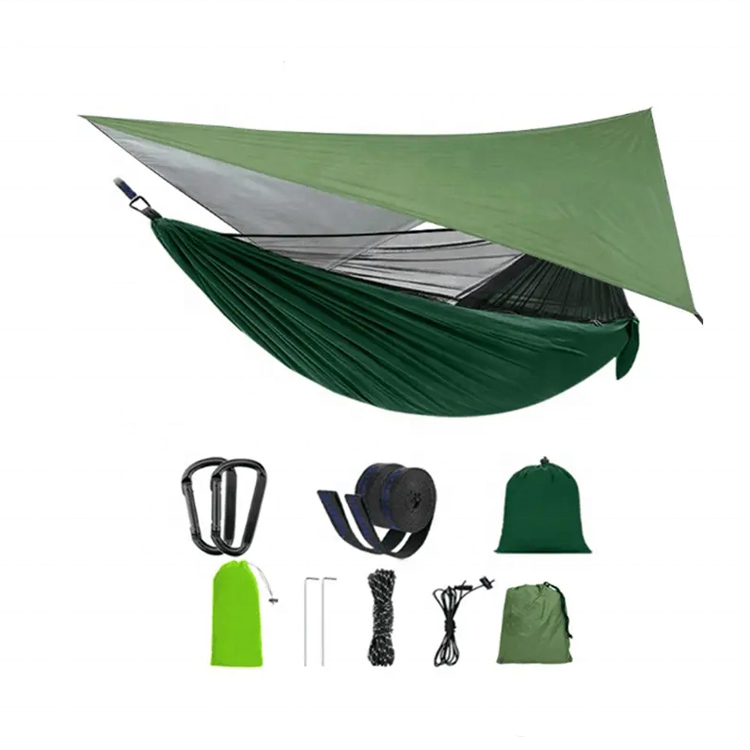 Soluzio integral honek hamaka premium bat, estaldura osoko eltxo-sarea eta euri-euli desmuntagarria konbinatzen ditu, kanpoko abenturetarako hainbat osagai bereizi erosi eta eramateko beharra ezabatuz.