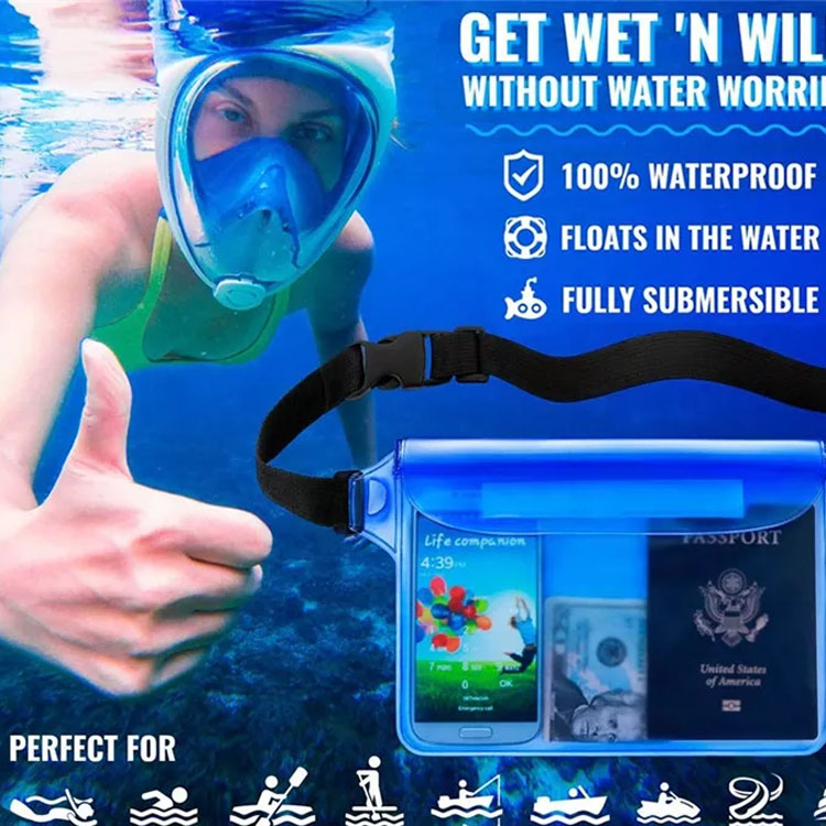 0,35 mm-ko dentsitate handiko PVCz egina, maiztasun handiko soldaduradun josturak dituena, poltsa lehor honek hesi iragazgaitza sortzen du, urperatze osoa eta eguraldi baldintza gogorrak jasaten dituena.